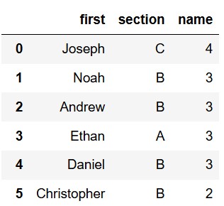 shared_info = roster[(roster.get('first') == first) & (roster.get('section') == section)]