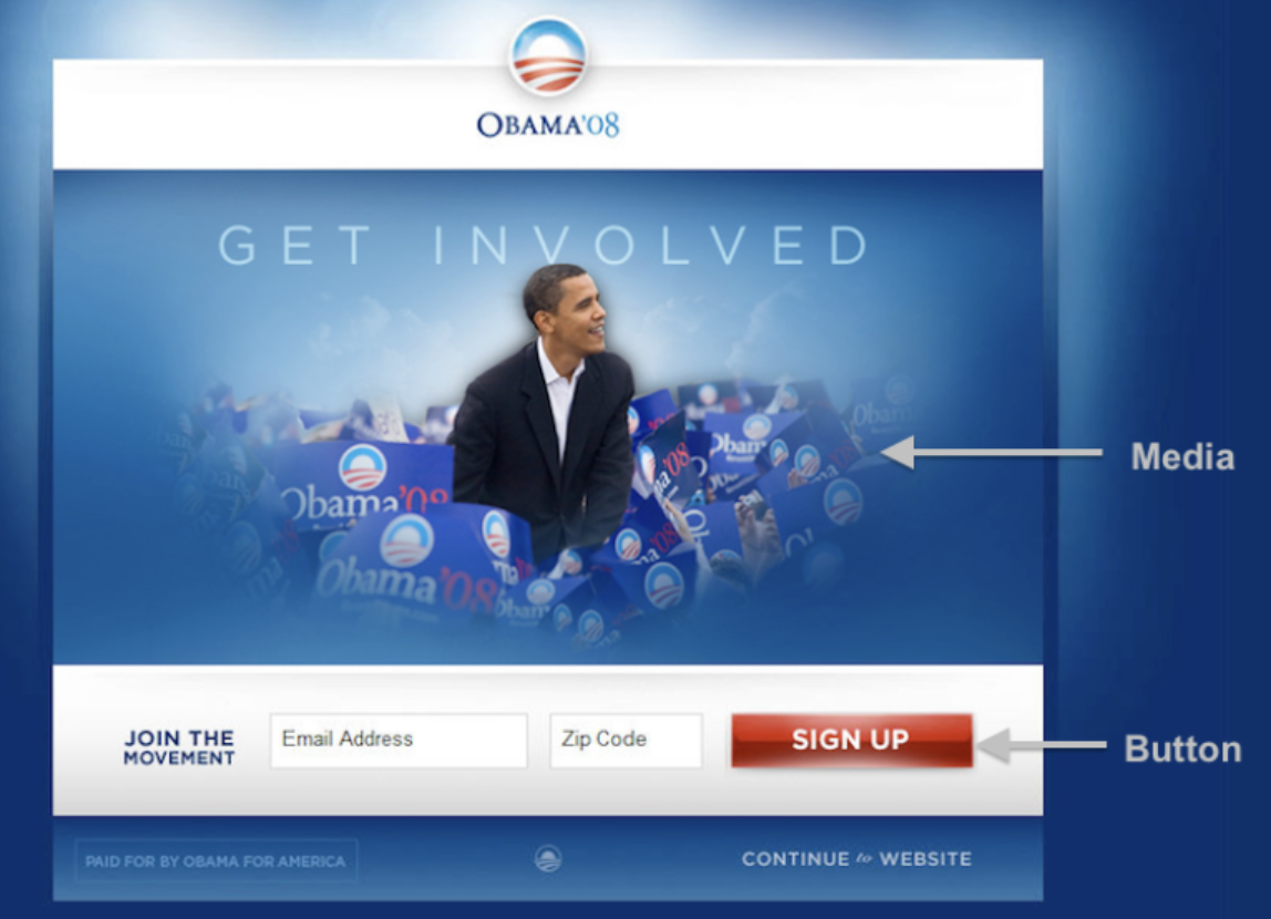 It is estimated that this combination of image and button brought in an additional 60 million dollars in donations versus the original version of the site.