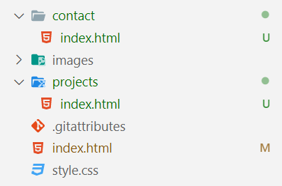 projects/index.htmlandcontact/index.html. - Set their title and add a