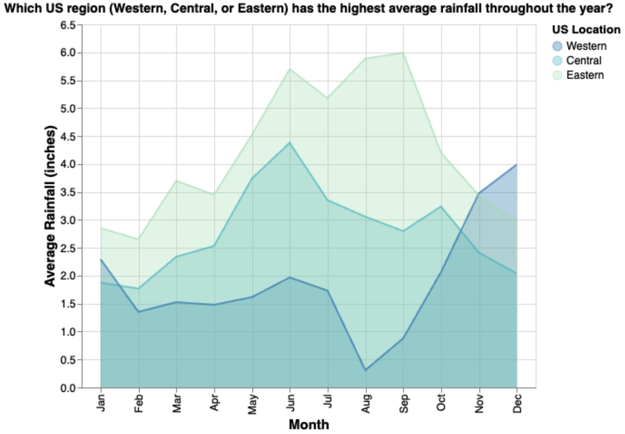 | Annotations | In addition to the Satisfactory requirements, the plot contains appropriate and helpful annotations (e.g. text, coloring, shading) that draw the reader’s attention to the most relevant parts of the data. (+2.5 points) | The plot’s title contains an interesting research question or takeaway; the axes have clear, human-readable labels with units; and a legend is present if appropriate. (+2 points) | One or more of the required annotations are missing (e.g. a title that describes the plot rather than an interesting takeaway, axes use auto-generated labels from data columns, etc.). (+1 points) |