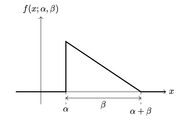 Consider Justin's right-triangle density. It is a parametric density with two parameters, \(\alpha\) and \(\beta\)(with \(\beta >0\)), and pdf: