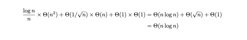 The probability of Case 1 is \(\log n / n\). The time taken in case 1 is \(\Theta(n^2)\).